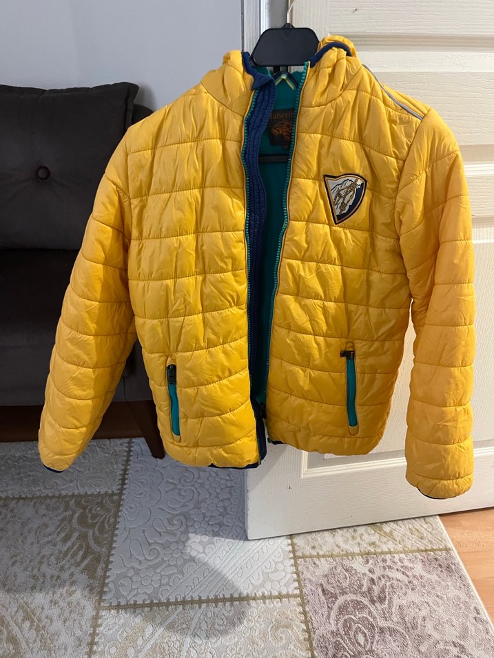 Fermuarlı önü parlak sarı renkli, kapitone desenli, rahat ve sıcak kumaştan yapılmış erkek çocuk montu. Yurt dışından geldi sayılı giyildi artık olmadığı için satıyorum