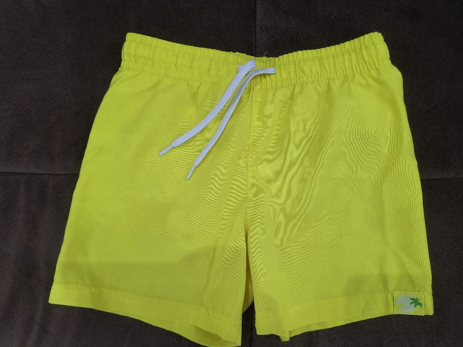 Sarı renkli, beyaz bağcıklı elastik bel bandına sahip erkek çocuk mayo şortu. Canlı ve sade tasarımıyla yüzme için uygundur.