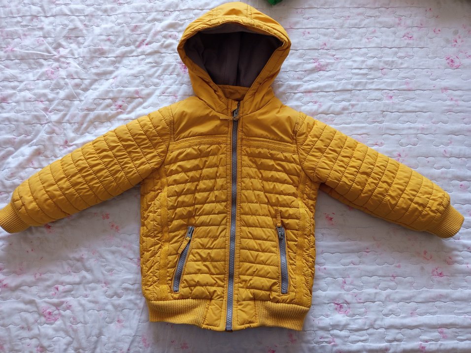 Sarı kapüşonlu erkek çocuk mont, fermuarlı ve cepli, yumuşak ve sıcak kumaştan, rahat sokak tarzı için uygun. temiz ve sağlam kapşon ve iç kısmı polarlidir, yağmur ve rüzgar geçirmez 4-6 yaş icindir