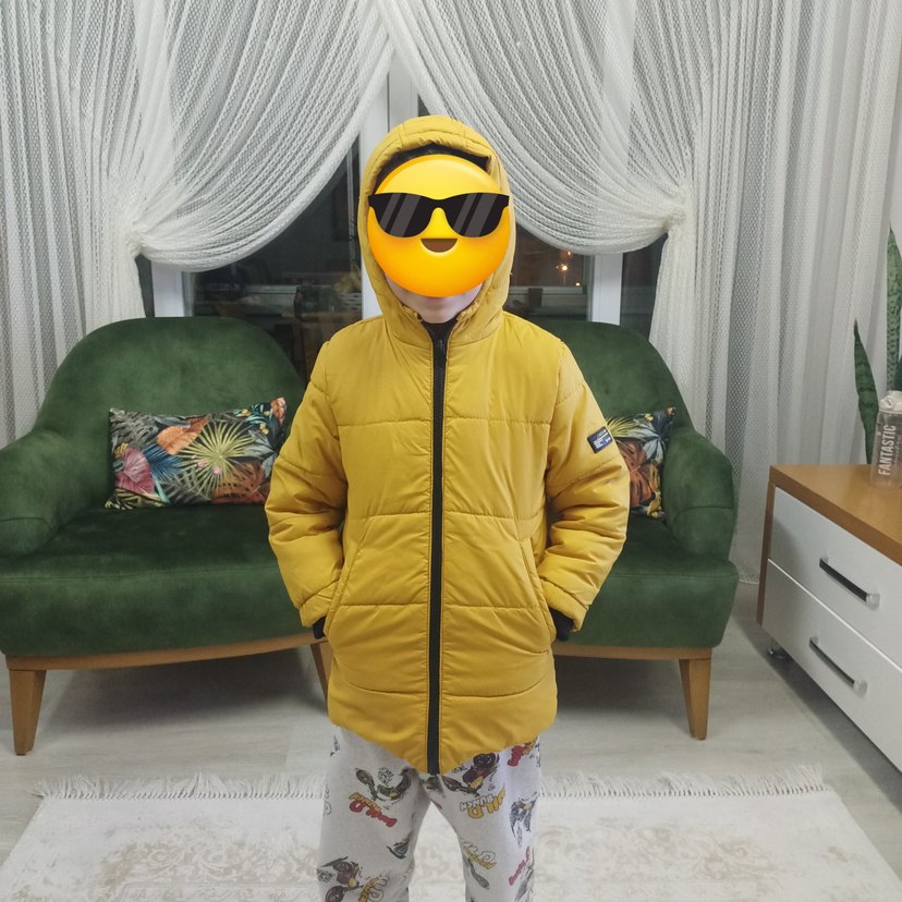 Sarı renkli, yüksek yakalı ve şişme tasarımlı erkek çocuk montu, rahat ve sıcak bir kumaştan üretilmiştir. Kapüşonlu ve dar kesimdir.