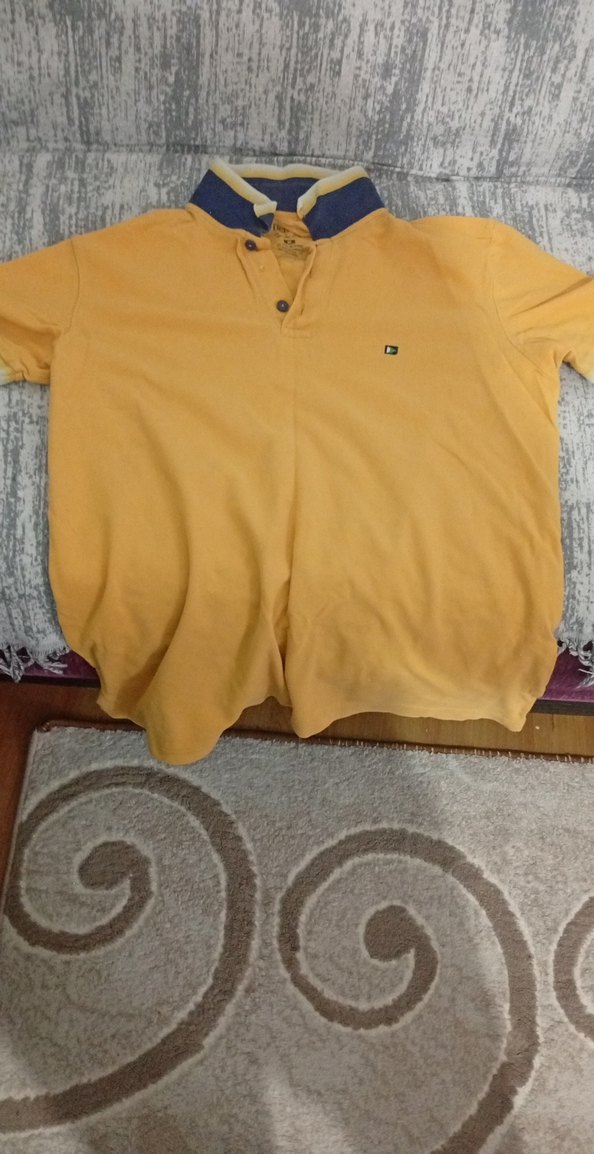 Sarı renkte, düğmeli yakalı, kısa kollu erkek polo tişört. Rahat kesimi ve sentetik kumaşıyla günlük sokak stiline uygun.