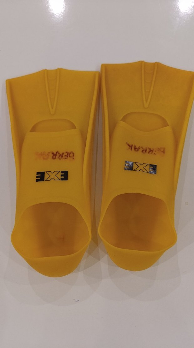 Sarı renkte, Velcro bantlı, baskılı desenli kauçuk erkek su ayakkabısı, spor ve sokak stiline uygun.