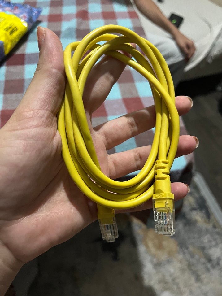 Sarı Ethernet kablosu, standart RJ45 konnektörlere sahiptir. Esnek ve dayanıklı yapısıyla güvenilir bağlantı sağlar. EJE Mark’a