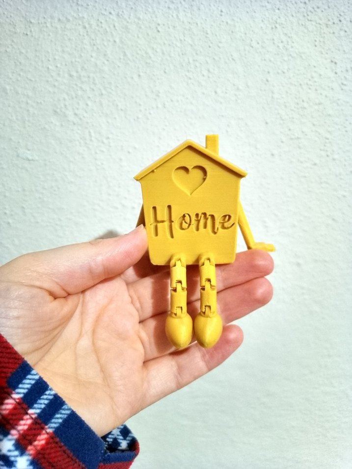 "Home" yazılı, kalp figürlü, hareketli bacaklı sarı ev .