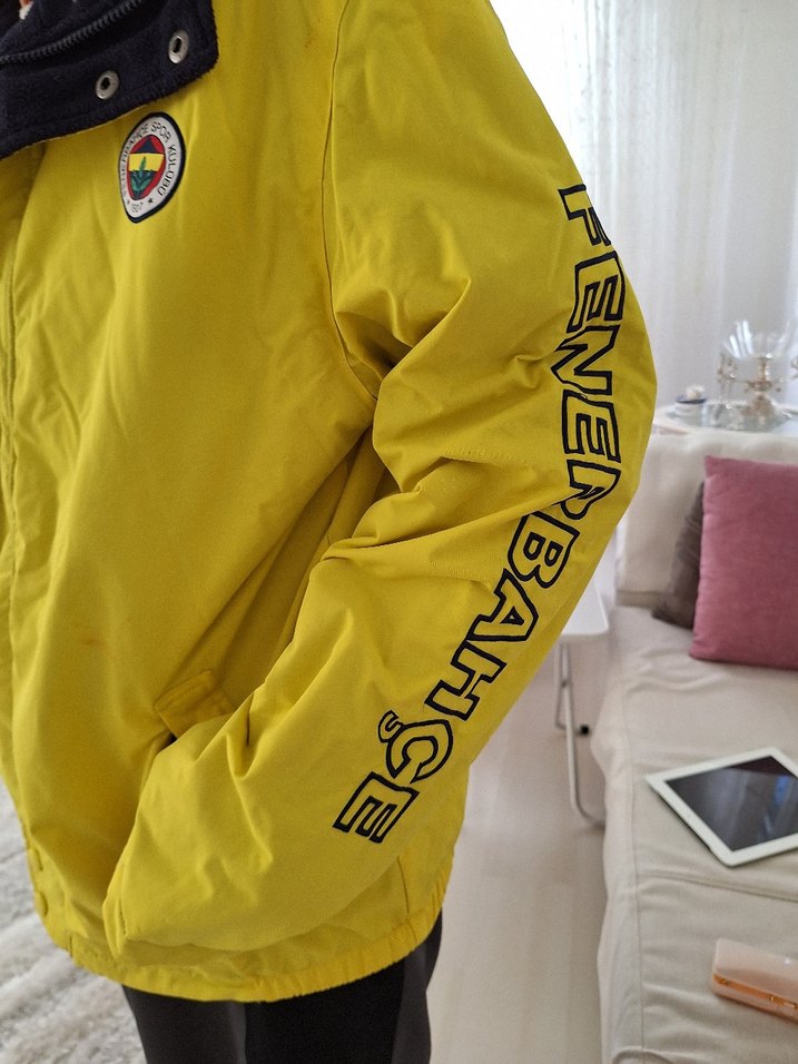 Parlak sarı renkte, bol kesim, uzun kollu ve bisiklet yaka erkek kayak montu. Fermuarlı ve kolunda baskılı Fenerbahçe logosu bulunur. Rahat ve sıcak kumaştan, dış mekan kullanımı için uygundur. Çift taraflı kullanımı vardır.⛷️ orijinaldir