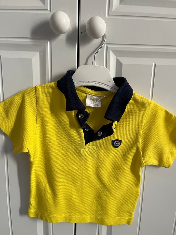Fenerbahçe baskılı, düğmeli, kısa kollu, yaka detaylı, renkli ve rahat kesimli sarı erkek çocuk kız çocuk polo tişörtü. Yumuşak ve sıcak kumaştan üretilmiştir. ⚽