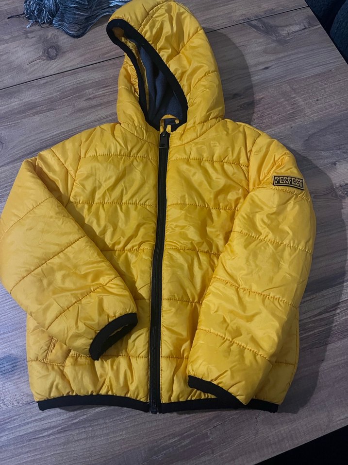 Parlak sarı renkli, fermuarlı ve notalı yakalı, erkek çocuklar için dar kesim mont. Yumuşak ve sıcak kumaştan, sade ve sokak stilinde.