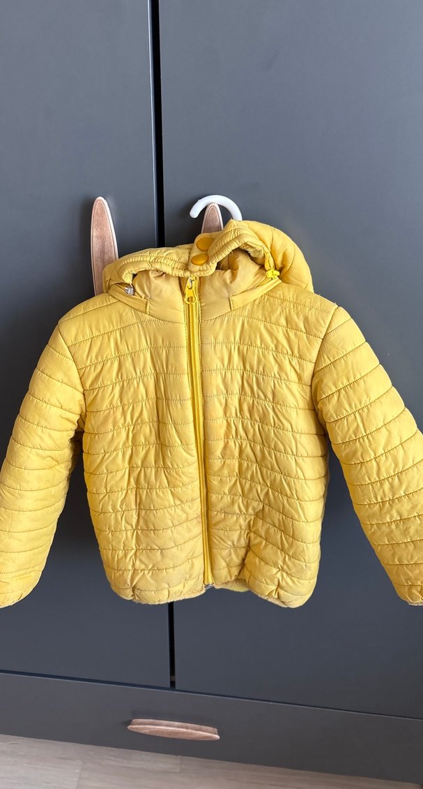 Fermuarlı önü ve kesimli yaka detayıyla sarı, fitted erkek çocuk montu. Yumuşak ve sıcak kumaştan, sokak modasına uygun. 3 yaş içindir rengi solmuş bazı yerlerde
