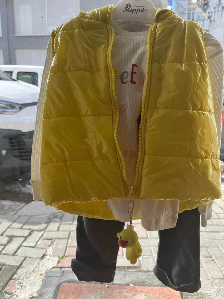 Parlak sarı renkte, fermuarlı ve balıkçı yaka, kolsuz, yumuşak ve sıcak dokulu erkek çocuk yeleği. Trendy casual stil için uygundur. 4 yaşa kadar mevcut