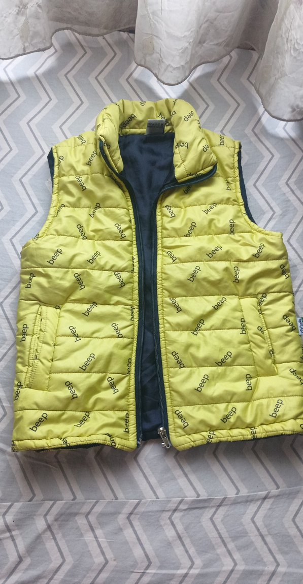 Sarı renk, fermuarlı, yaka detaylı, kolsuz erkek çocuk yeleği. Yumuşak ve sıcak kumaştan, fit kesim, renkli sokak stili ile.
