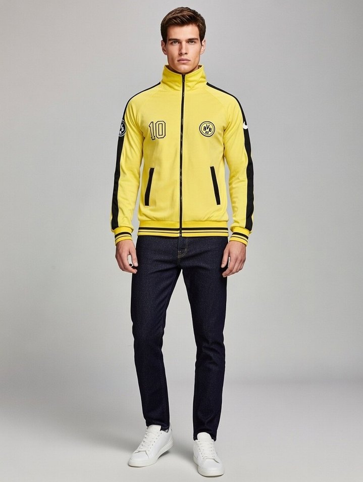 Sarı renkli, fermuarlı erkek sweatshirt. Normal kesim, bisiklet yaka ve uzun kolludur. Renkli baskılı ve yumuşak, sıcak kumaştan üretilmiştir. Spor tarz için uygundur. ♂️