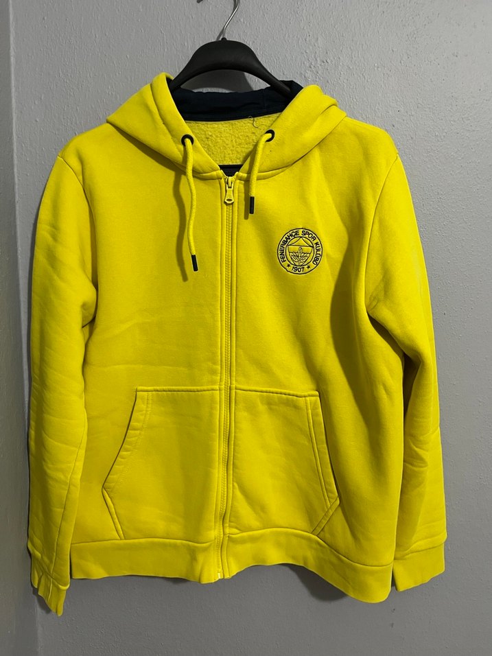 Sarı Fermuarlı Kadın Kapüşonlu Ceket