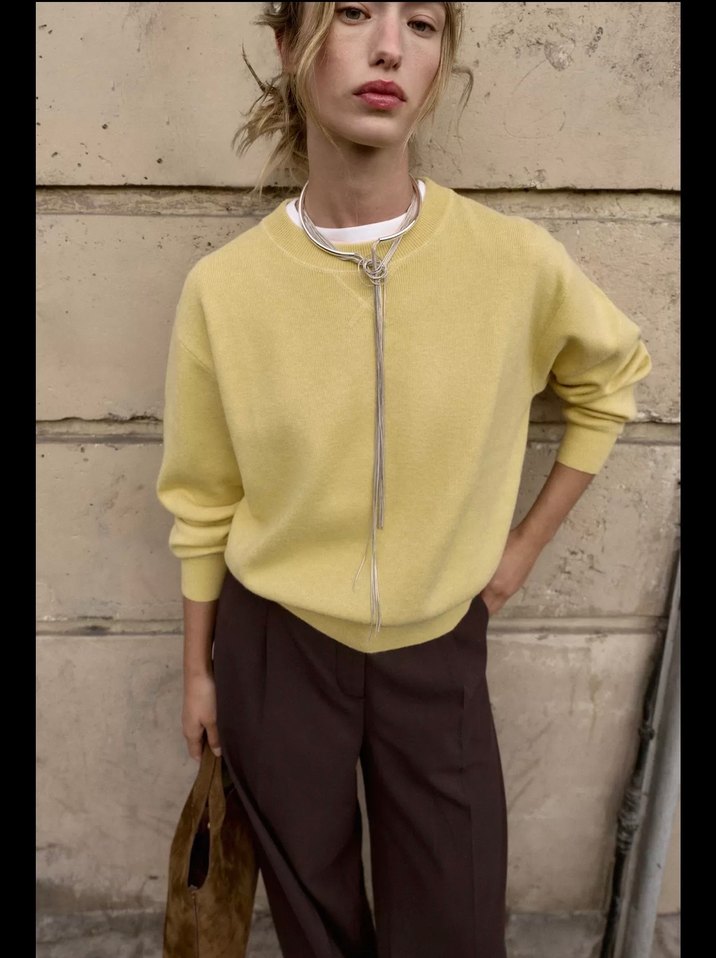 Sarı renk, bol kesim, uzun kollu, fermuarlı triko sweatshirt. Günlük rahat sokak stili için uygun.