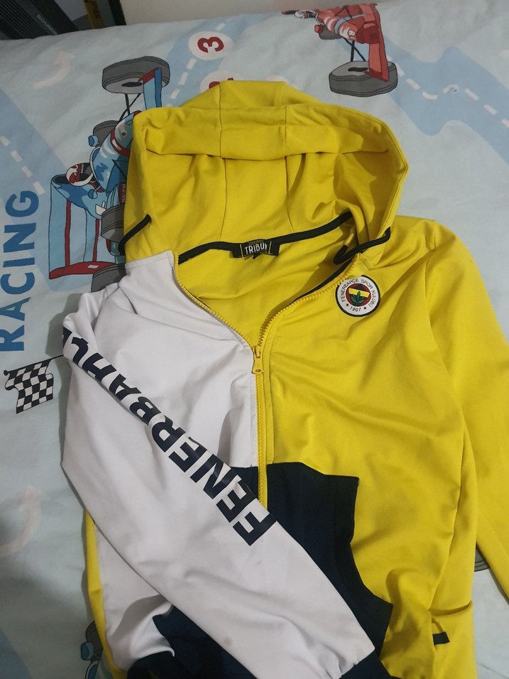 Erkekler için sarı, kapüşonlu ve fermuarlı kısa kesim yağmurluk. Uzun kollu ve baskılı, trend sokak stili athleisure tasarım. Günlük kullanıma uygun. ️11 12 yaş içindir