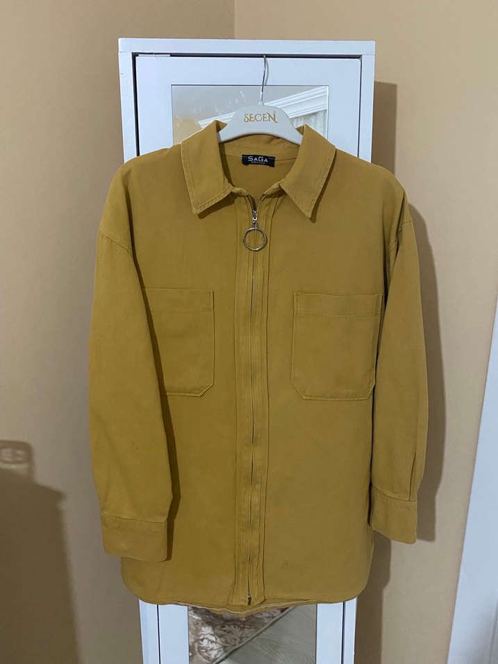 Sarı renkli, fermuarlı, uzun kollu ve kumaşı kottur. M ve L bedene uyar.