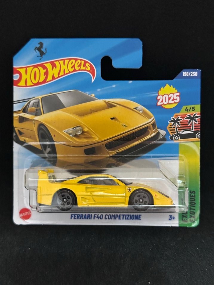 Kartonet hatasızdır Hot Wheels markalı sarı Ferrari F40 Competizione oyuncak araba, 2025 serisine ait ve 198/250 numaralı modeldir. 3 yaş ve üzeri için uygundur.