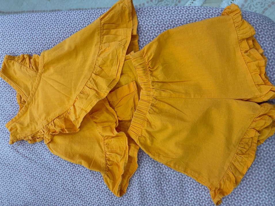 Sarı Fırfırlı Kız Çocuk Keten Etek