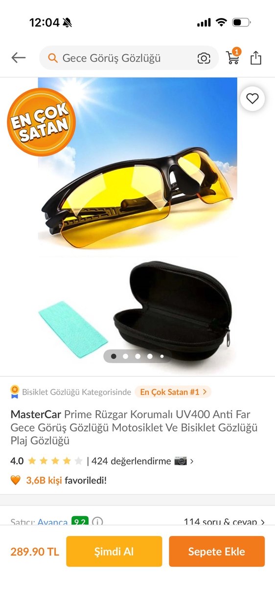 Çizikleri var fiyatı o yüzden uygun tutuyorum, kılıfı yok MasterCar Prime sarı bisiklet gözlüğü UV400 koruma ve anti far özelliği sunar. Gece görüşü, motosiklet, bisiklet ve plaj için uygundur.
