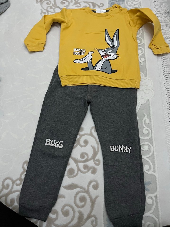 Sarı Gri Bugs Bunny Baskılı Erkek Eşofman Takımı