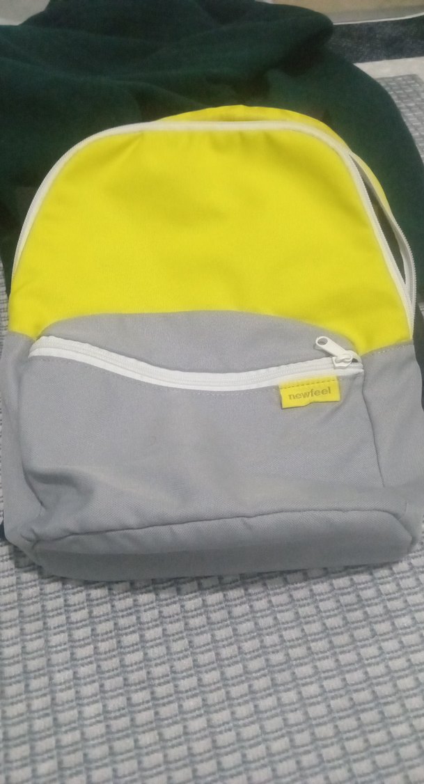 Sarı ve gri renkte, fermuarlı, sentetik kumaştan üretilmiş, günlük kullanıma uygun cocuk sırt çantası.