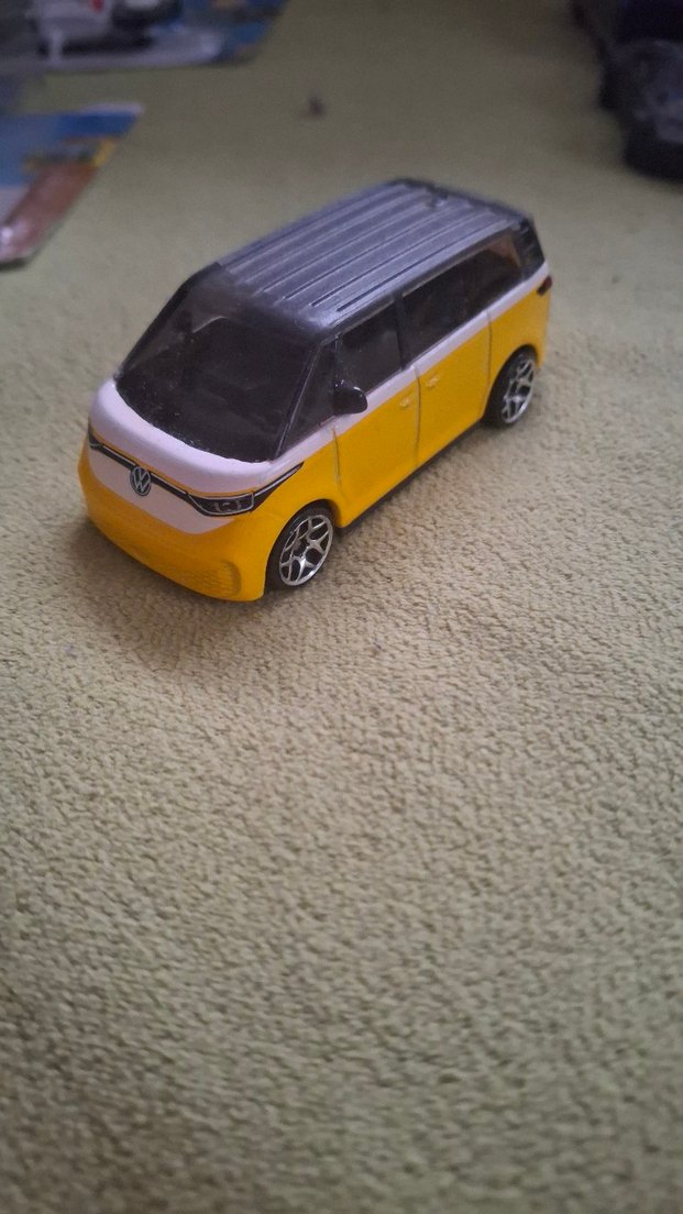 Detaylı tekerlekli ve camlı sarı gri minibüs oyuncak araba.