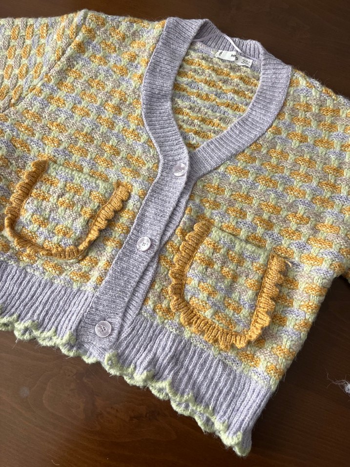 #orjinal #mango hırka 1 kere giyilmiştir. Hurçlarda bekledikleri için biraz kırışmış . Sorunu yoktur. Çok tatlı bir parça Bedenim değiştiği için çok uygun fiyattan veriyorum Mango kalıpları geniştir Gri ve sarı renklerde nakışlı cepleri olan, uzun kollu ve V yakalı, midi uzunlukta bol kesim bohem kadın hırka. Rahat ve konforlu, günlük kullanım için uygun.