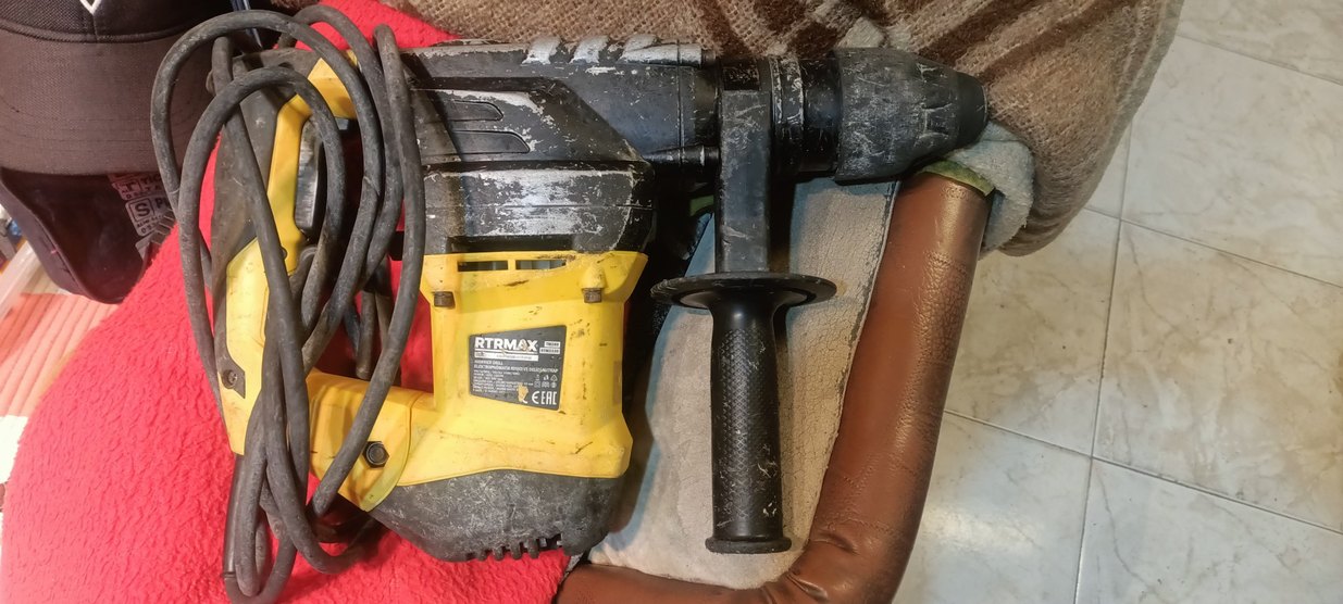 Sarı ve gri renkte RTRMEX matkap, sağlam siyah tutma sapıyla birlikte. Kullanılmış ve işlevsel durumdadır. ⚙️