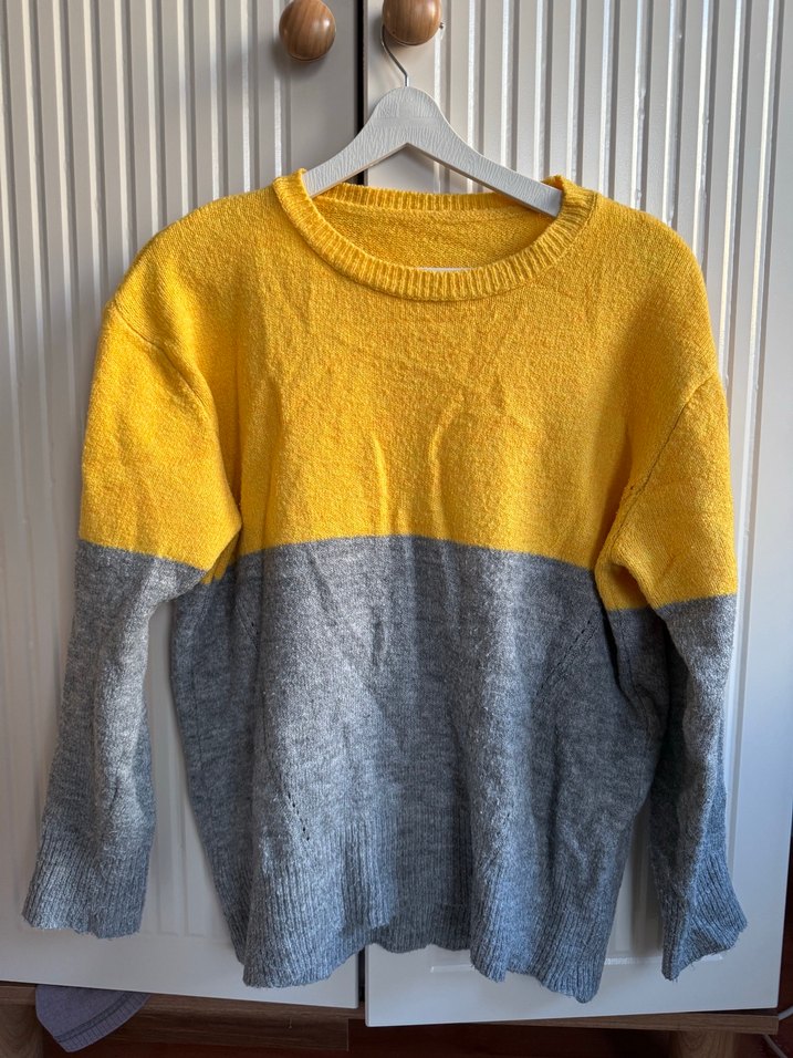 Sarı Gri Triko Kadın Kazak