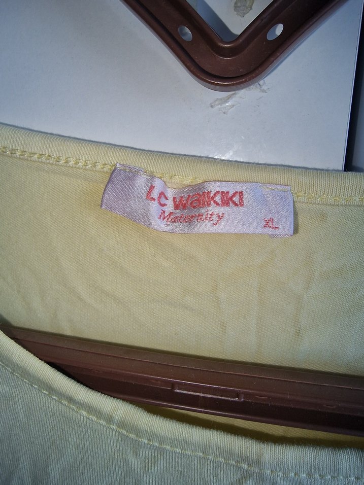 Sarı, parlak baskılı kumaştan, askılı kollu, Velcro detaylı, kısa mini boy, vintage bohem tarzda dar kesim hamile bluzu.
