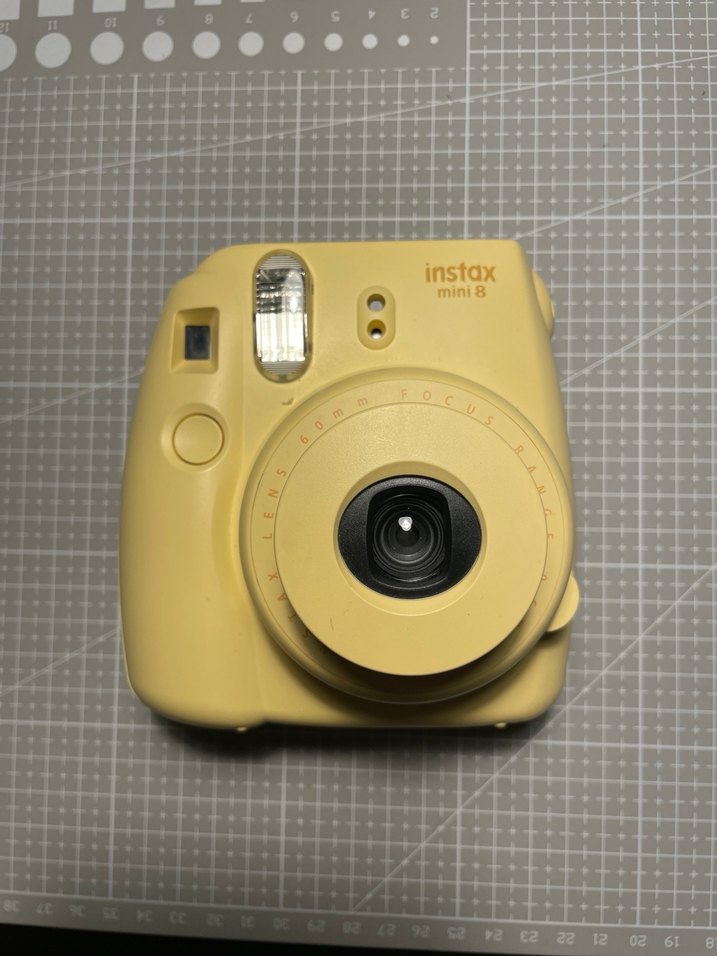 Sarı renkte Instax Mini 8 film kamera, anında fotoğraf baskısı yapar. Sonda görünen çantası ile göndereceğim. Çantası hasarlı ama makine sapasağlam.
