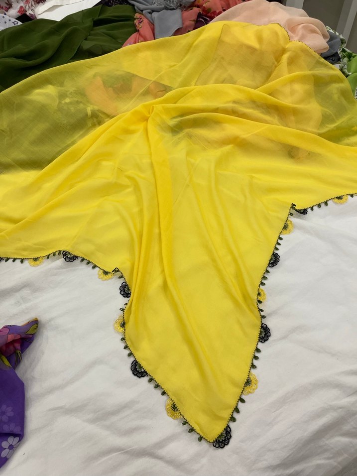Sarı renkte, ipek dokulu iki kenarlı çeyiz ürünüdür toplu siparişlerde indirim mevcuttur