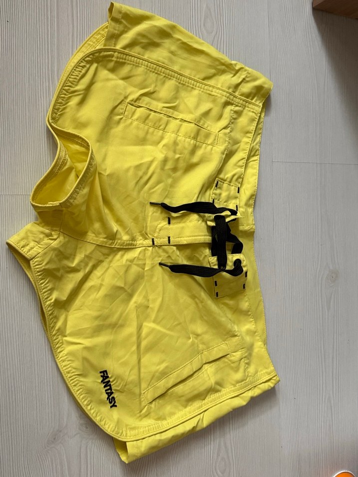 Cırt cırtlı bağcıklı sarı kadın deniz şortu