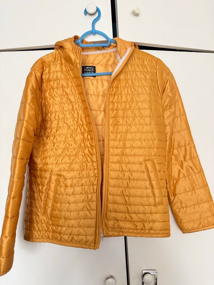 Sarı, fermuarlı ve uzun kollu, notched lapel yaka detaylı, parlak sentetik kumaştan yapılmış, fit kesim midi kadın mont. Sorunsuz