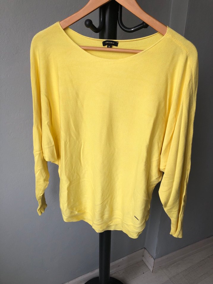 Kadınlar için keten kumaştan, uzun kollu, yuvarlak yakalı, pastel sarı renkli salaş kesim sweatshirt. Günlük kullanıma uygun, desen içermeyen rahat bir model. Mağazamızın tanıtım çekimlerinde kullanılmış ürünüdür.Sadece çekimler sırasında manken tarafından kullanıldığı için mağazada satışa konulmayarak yıkanıp burada satışa sunulmuştur. #triko#kazak
