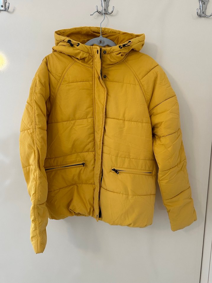 Fermuarlı cepleri ve parlak sarı rengiyle, ince kesimli bu kışlık mont rahat ve günlük sokak tarzı sunar. Uzun kollu ve yakası kesimlidir. ❄️