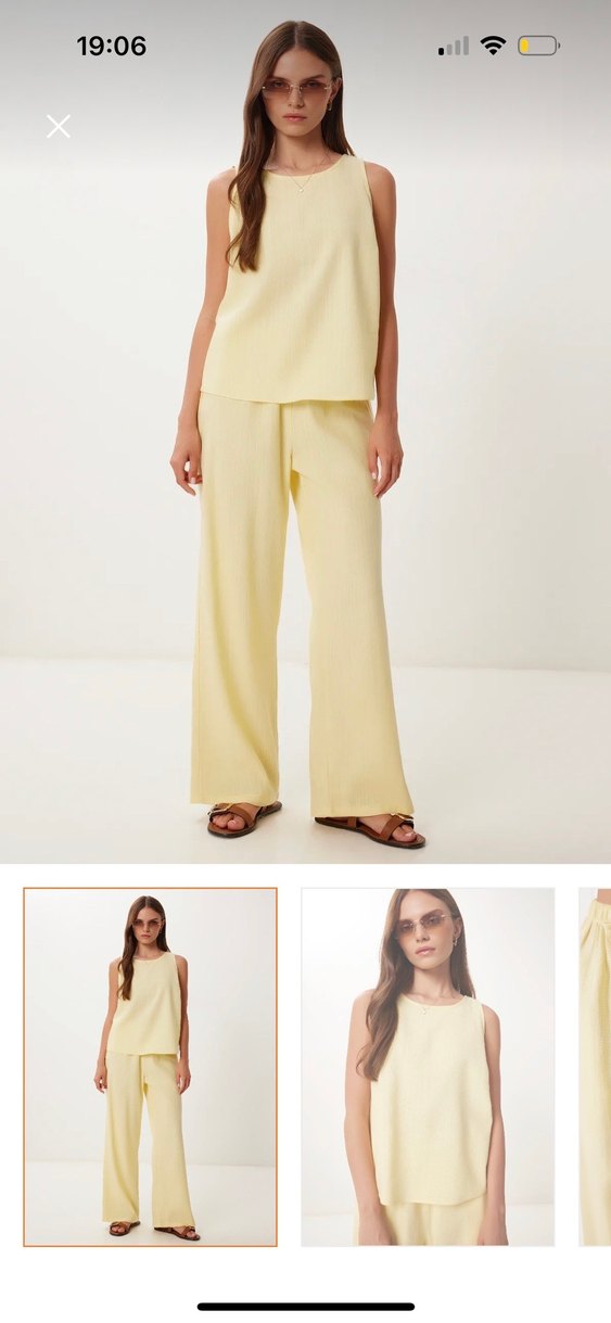 Sarı midi uzunlukta, regular fit kadın kumaş pantolon. Minimalist ve normcore tarzıyla gündelik kullanım için rahat ve şık bir seçenek sunar.