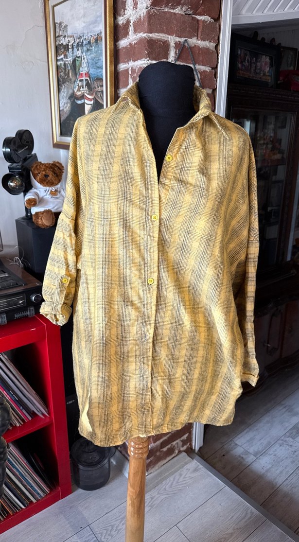 Bir fotoğraf çekimi için alındı çekim dışında giyilmedi. Yumuşacık bir kumaşı var tatlı bir sarı renk. Sıcacık tutuyır Oversize kalıp.