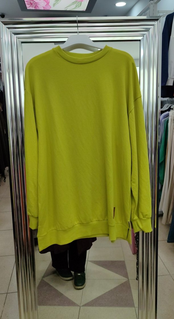 Kadınlar için oversize kesim, yuvarlak yaka ve uzun kollu sweatshirt. Yumuşak ve sıcak kumaşı rahatlık sağlar. Parlak sarı rengi günlük kombinlere renk katar. geniş kalıp ürün mağaza ürünüdür