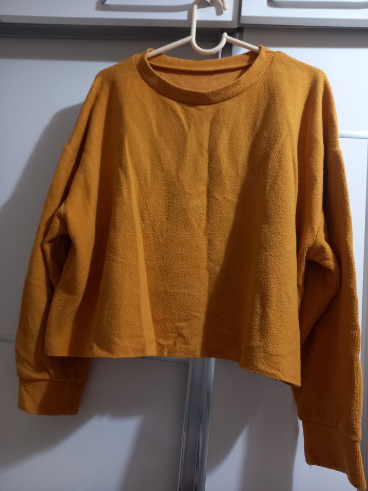 Sarı, uzun kollu, yuvarlak yakalı ve bol kesim kadın sweatshirtü. Yumuşak ve sıcak kumaştan üretilmiştir, günlük kullanıma uygundur. ✨