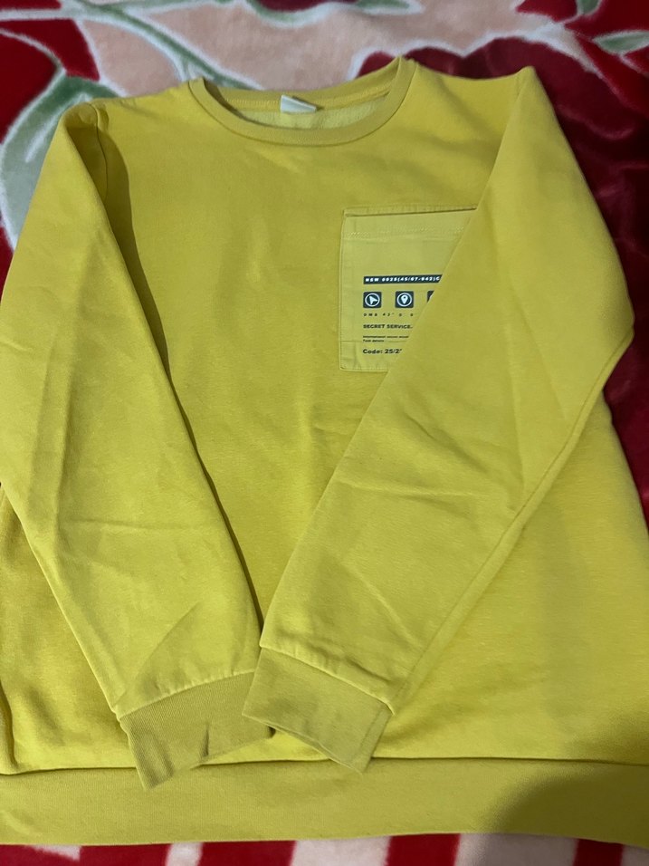 Pastel sarı, uzun kollu, rahat kesim kadın sweatshirt. Göğüs cebinde baskılı detay bulunur. Yumuşak ve sıcak kumaştan, günlük kullanım için uygundur.
