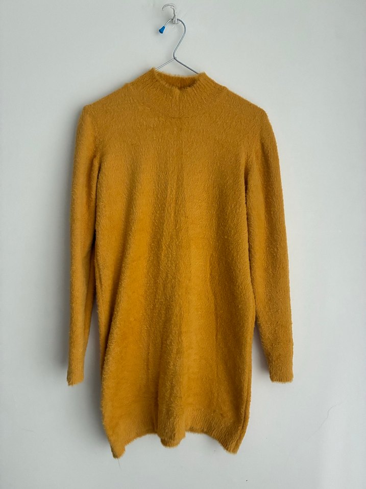 Sarı, yün, triko, normal boy ve uzun kollu, yuvarlak yaka, bol kesim rahat kazak. Günlük kullanım için uygundur. ✨standart beden. 1.68 boy 70 kiloda giydim