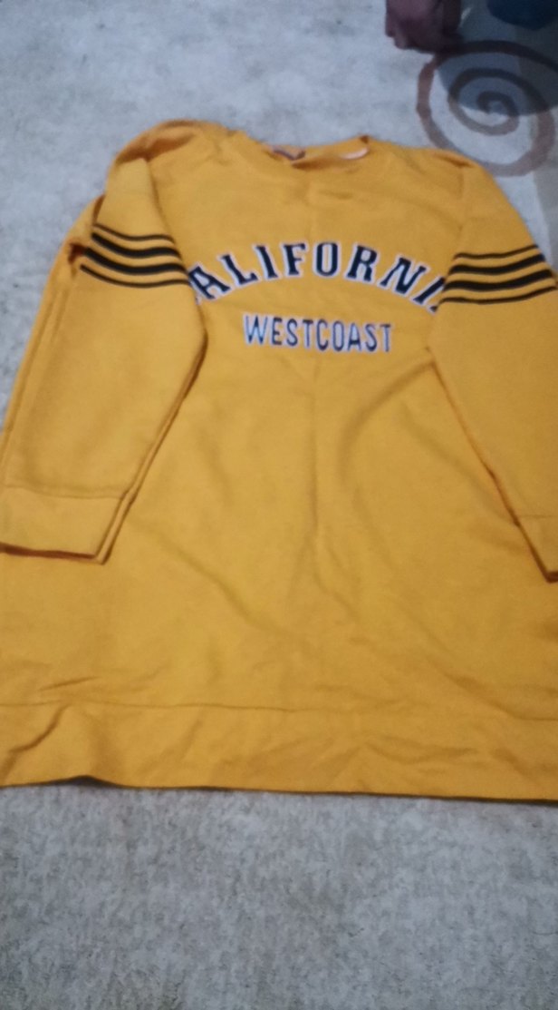 Sarı renkli, uzun kollu, salaş kesim kadın sweatshirt. "WESTCOAST" baskılı, düğmeli detaylı ve normal midi boydadır. Rahat ve parlak kumaştan üretilmiştir. Sıfır ürün