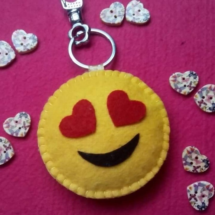 Sarı Kalpli Emoji Püsküllü Anahtarlık
