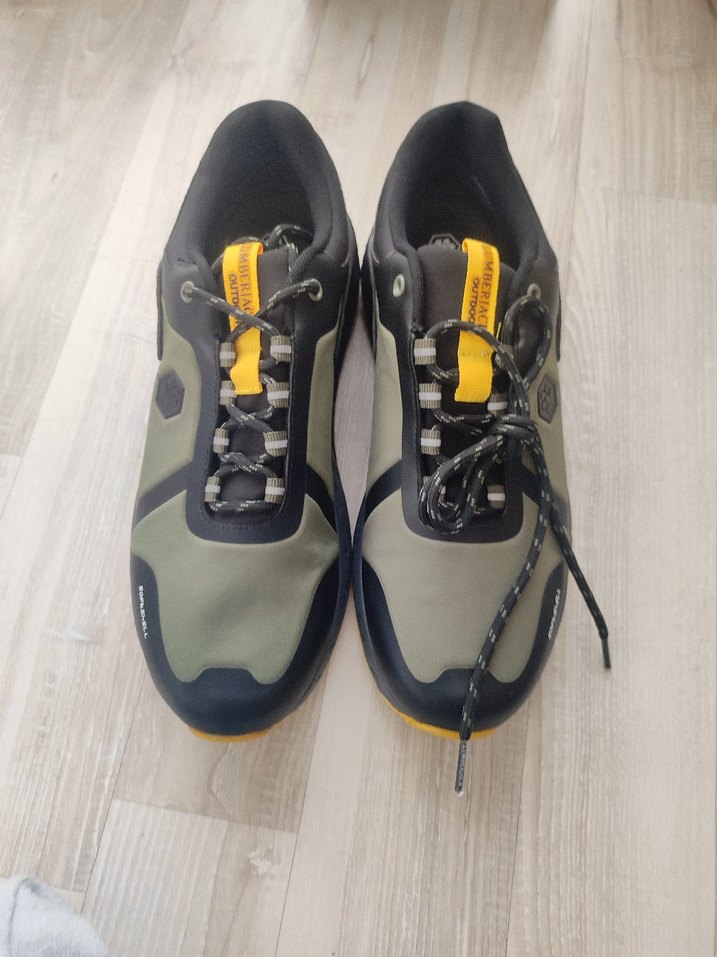 Sarı ve gri tonlarda kamuflaj desenli, kauçuk tabanlı, bağcıklı erkek outdoor spor ayakkabısı. Sokak stili ve spor için uygun.43 numara