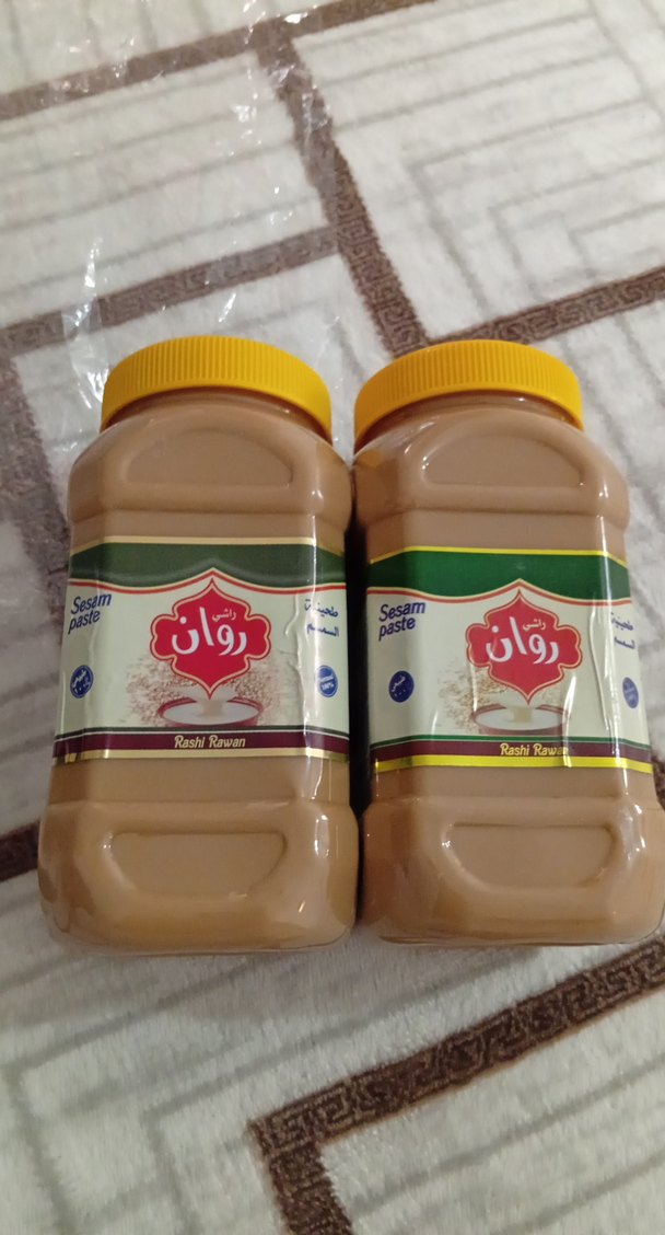 Sarı kapaklı, açık bej renkte iki susam tahin