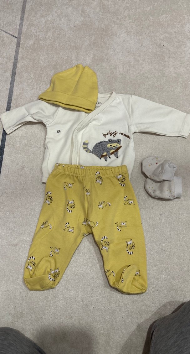 Sarı Kapüşonlu Bebek Takımı