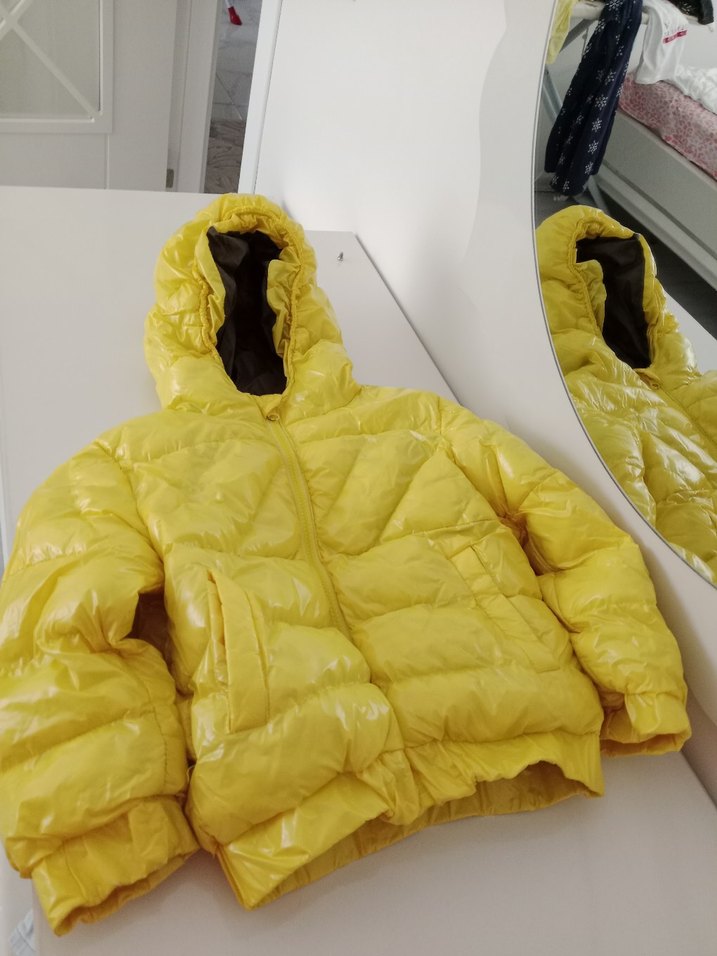 Parlak sarı renkte, kapüşonlu ve düğmeli çocuk kışlık mont. Uzun kollu, orta boy, sokak modasına uygun ve çocuklar için rahat bir tasarım. ❄️marka bg dır.
