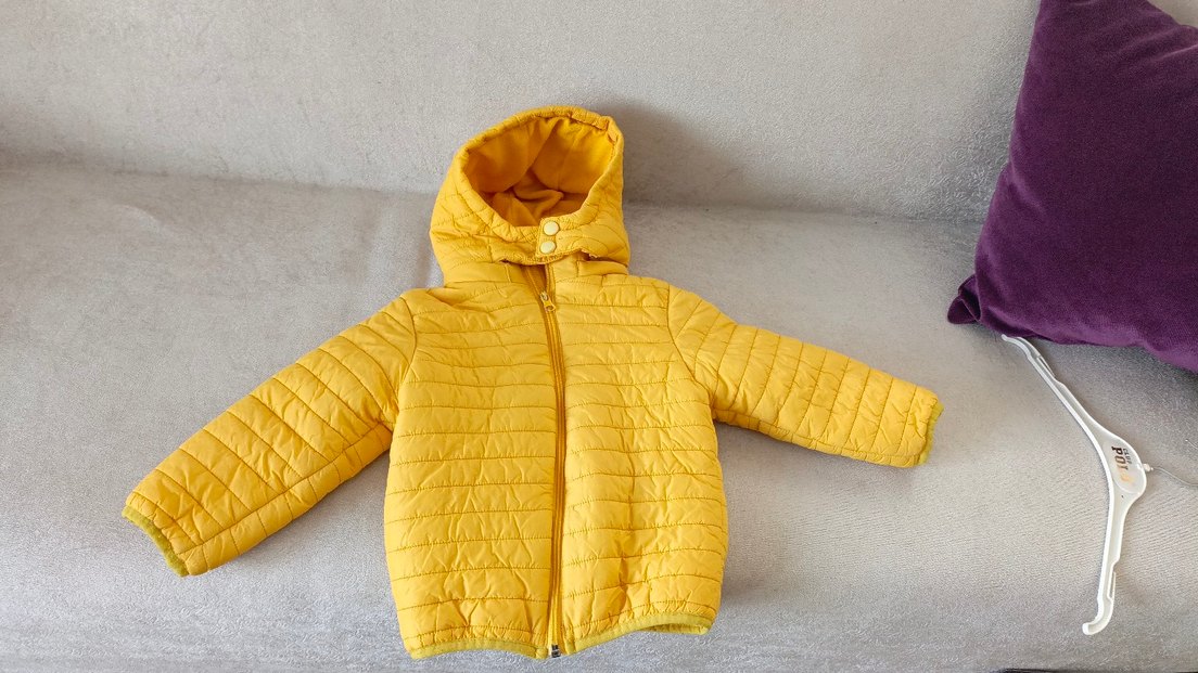 Sarı kapüşonlu erkek çocuk mont, ön fermuarlı ve ince kesim, yumuşak ve sıcak kumaştan, street wear tarzında. 3 yaş yazıyor fakat 2 yaş çocuğa daha uygun olur.