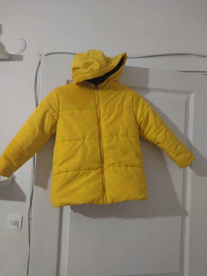 Sarı kapüşonlu erkek çocuk mont, fermuarlı ve fitted kesime sahiptir. Yumuşak, sıcak kumaştan yapılmış ve parlak görünümlüdür. Sokak stiline uygundur. içinde küçük bir delik var dikilince geçer