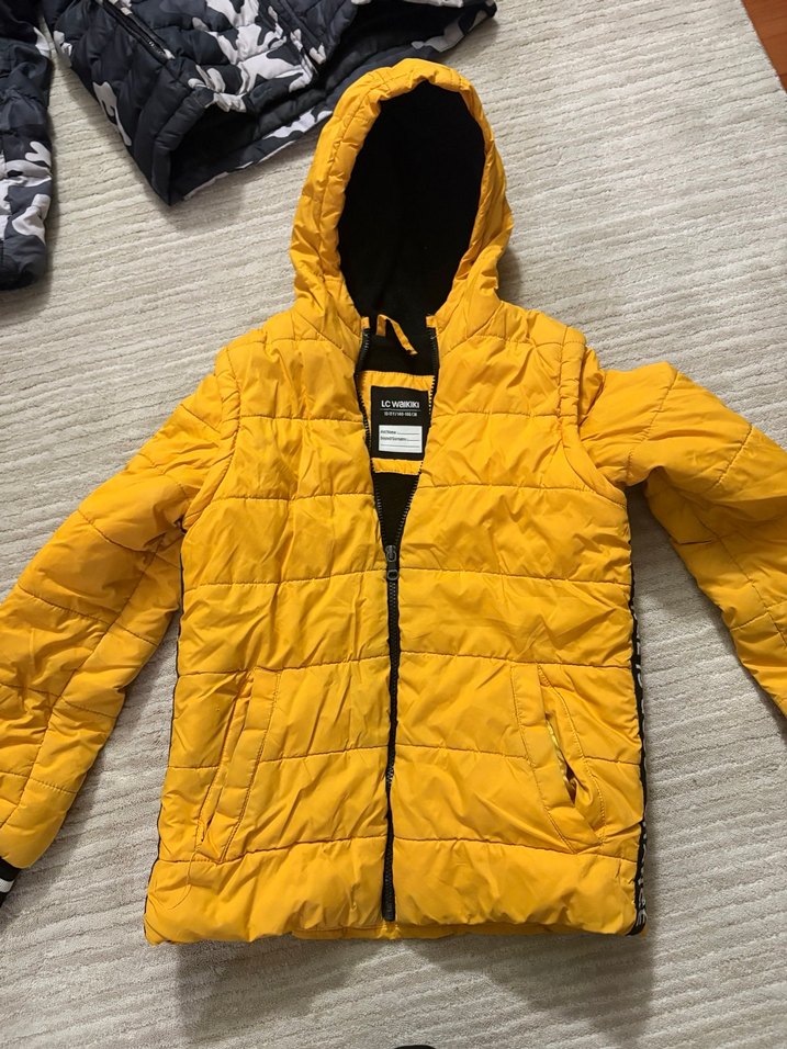 Sarı Kapüşonlu Erkek Çocuk Mont